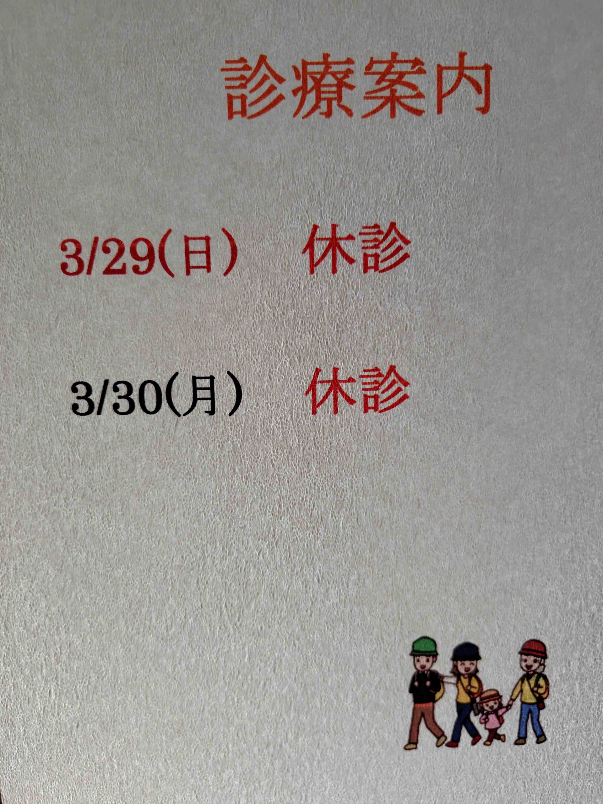 3/30(月)休診させて頂きます。